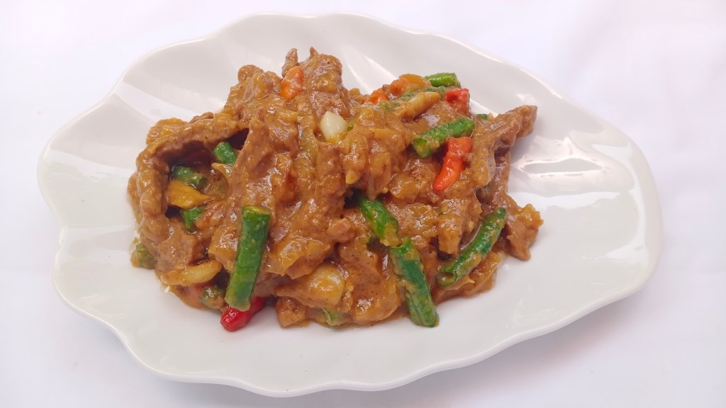 - Masukkan daging yg telah dipotong-potong persegi panjang ke dalam kuali.